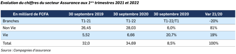 The overall turnover of life insurance is 17.5 billion FCFA at the end of the first nine months of 2021 compared to 14.6 billion FCFA year-on-year.